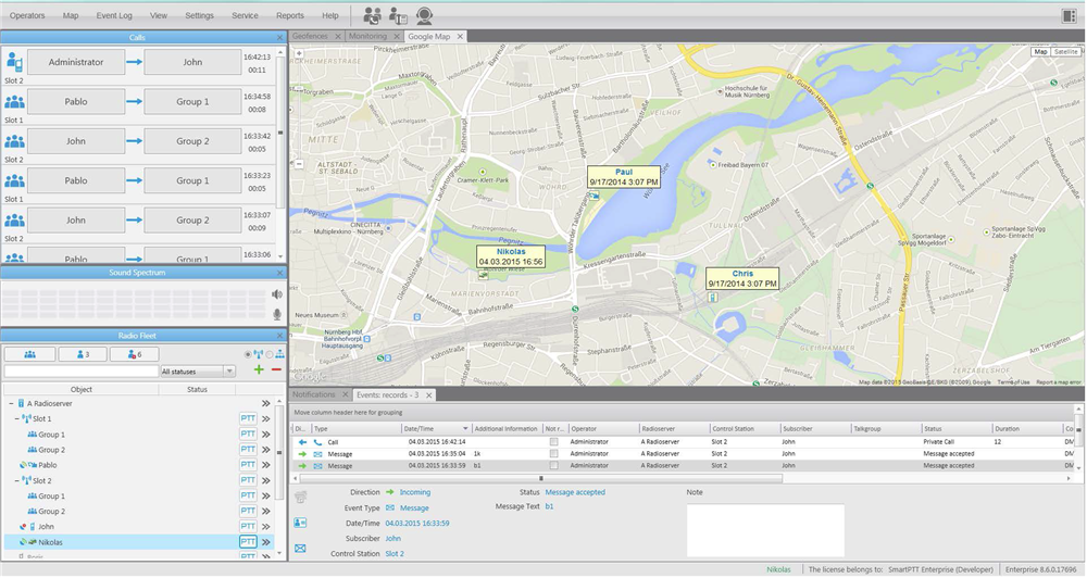 SmartPTT dispečerska konzola pruža mogućnost prikaza većeg broja karti unutar iste konzole ili na izdvojenim prozorima na zasebnim zaslonima. Ostale mogućnosti uključuju: