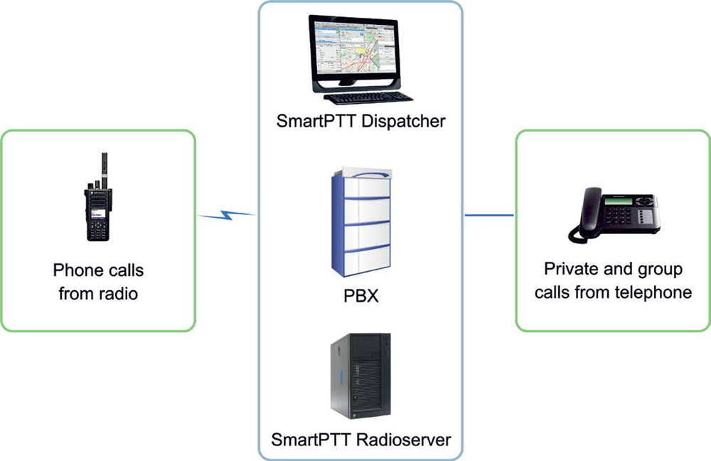 SmartPTT radio-telefonsko prespajanje (phone patch) MotoTRBO radio korisnicima i dispečerima pruža mogućnost primanja i uspostavljanja telefonskih poziva, bilo da se radi o fiksnoj liniji ili mobilnim korisnicima. U kriznim se situacijama radio korisnicima pruža mogućnost kontaktiranja osoblja zaduženog za krizne situacije ili ostvarivanje komunikacije sa upraviteljima koji u tom trenutku nisu na dužnosti.