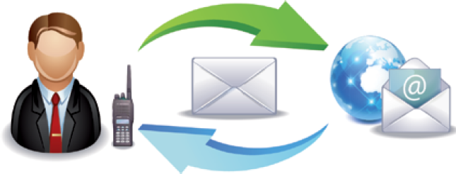 Pristupnik elektroničke pošteKorisnici elektroničke pošte mogu slati tekstualne poruke MotoTRBO radio korisnicima ili govornim grupama. Tekstualne poruke mogu biti odaslane sa radio uređaja na adrese elektroničke pošte zadane unutar Radioserver Konfiguratora. |
